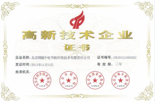 當前位置: 國能中電公司動態> 熱烈祝賀我公司榮獲“國家高新技術企業證書”